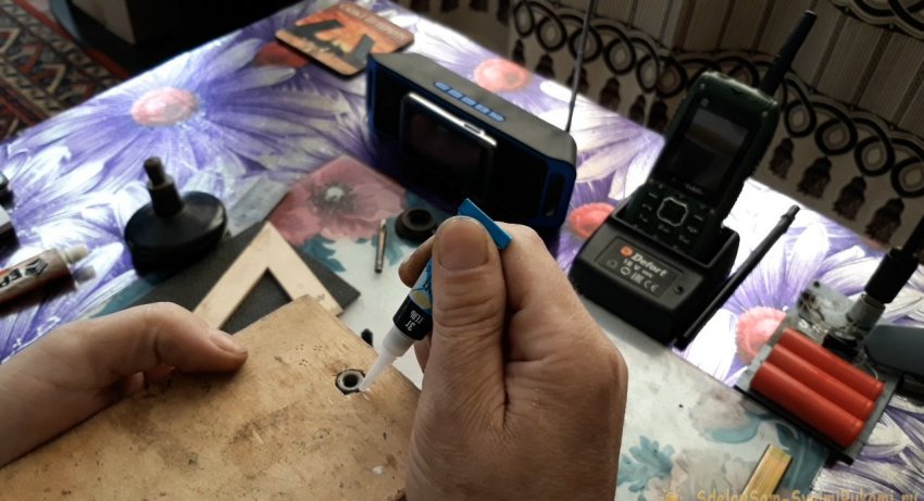 Устанавливаем гайки в потаи и фиксируем секундным клеем.