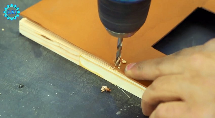 Вдоль длинных сторон пластины ПВХ укладываем деревянные планки и крепим заклепками.