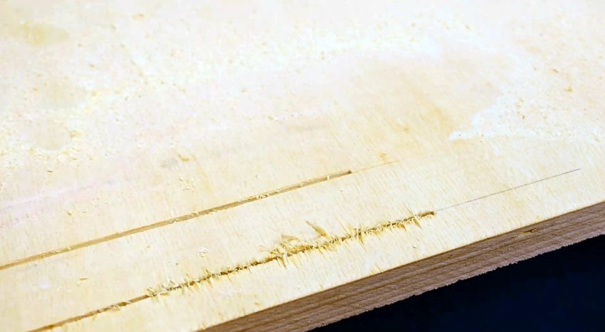 После этого нужно распилить заготовку точно между ними, и сколов точно не будет.