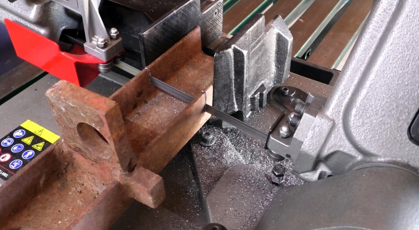 По сделанной метке необходимо вырезать треугольники на полках швеллера. Это позволит центрировать трубы при распиле.