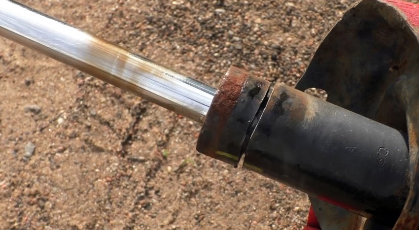 Далее необходимо разобрать стойку амортизатора, чтобы демонтировать ее шток.