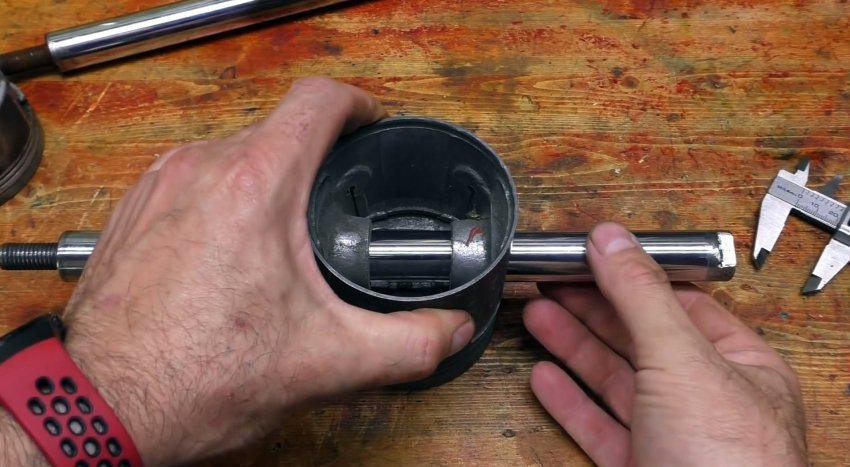 Под его диаметр подбирается старый поршень. Нужно, чтобы шток плотно входил в отверстие для поршневого пальца.