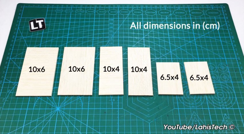 Корпус делается из тонкой древесины. Плюс такого выбора в том, что дерево очень хорошо и надежно клеится. Но вы всегда можете выбрать другой материал для корпуса, это не запрещено. Ниже представлены детали корпуса с размерами: