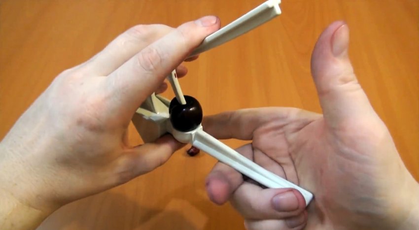 Просто кладем ягоду (хотя в ботанике это фрукт) и выдавливаем косточку.