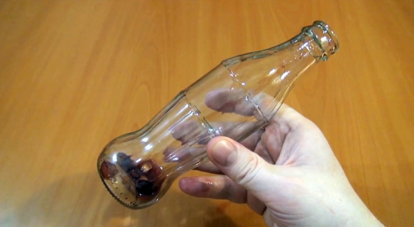 Берем бутылку от напитка или другой сосуд с узким горлышком. Кладем сверху вишню и палочкой просто выдавливаем косточку в сосуд.