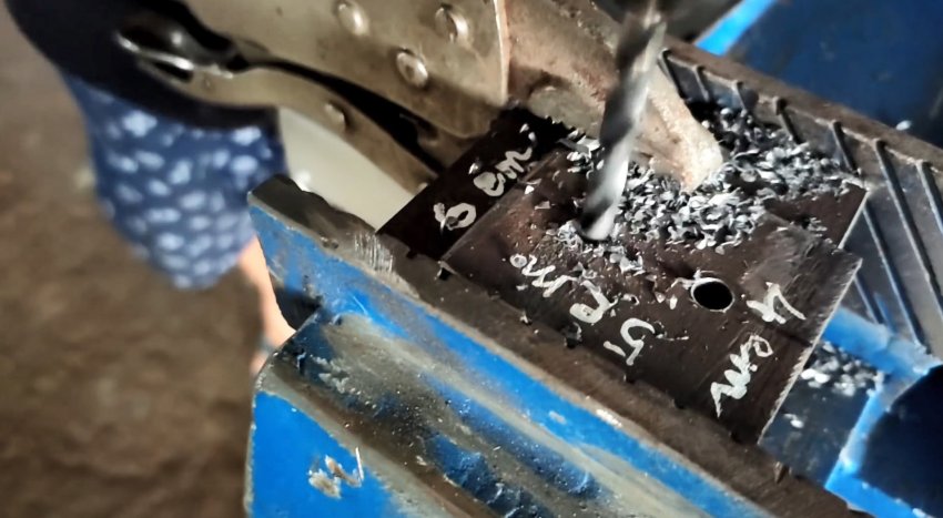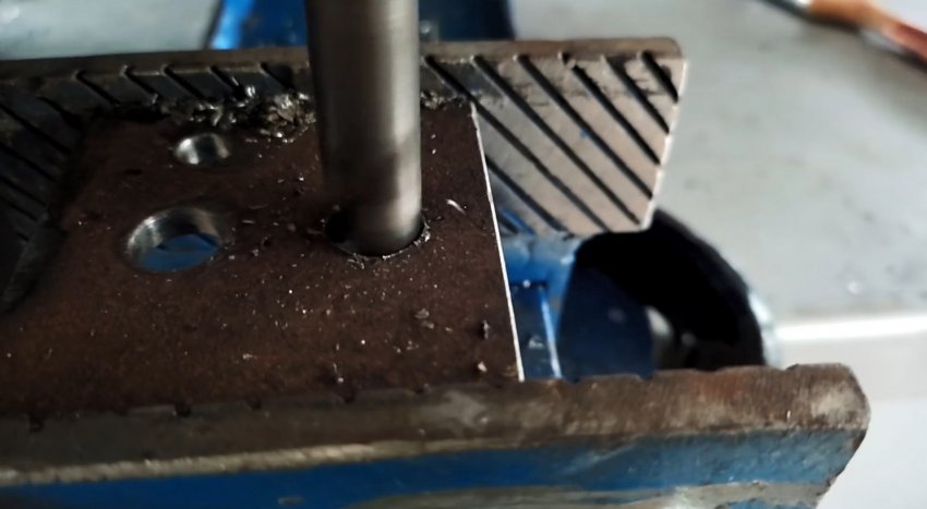 В выступающей сбоку части квадрата на уровне большого отверстия высверливаем такое же.