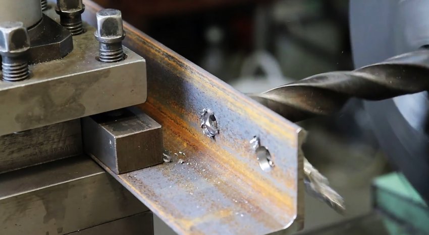 В швеллере отмечаем центр будущего отверстия и просверливаем под толщину болта.