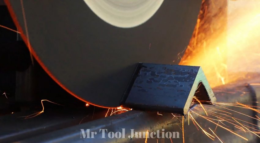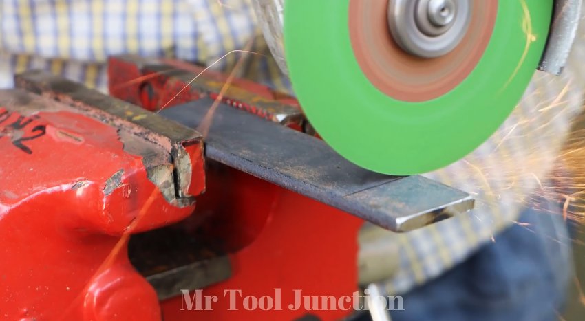 По этим линиям выполняем болгаркой прорези на половину толщины и по ним сгибаем концы пластины в противоположные стороны на один и тот же угол.
