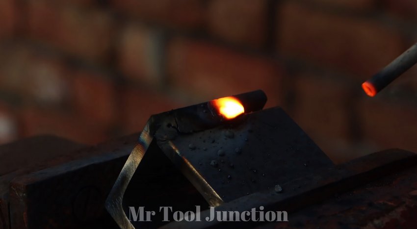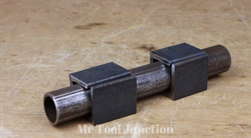 К другой отогнутой части пластины, но с противоположной стороны, также привариваем отрезок трубы покороче.