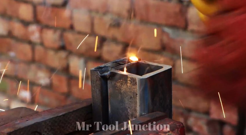 Обхватываем ими на некотором расстоянии попарно в виде квадрата подходящую по диаметру круглую трубу и в таком положении свариваем.