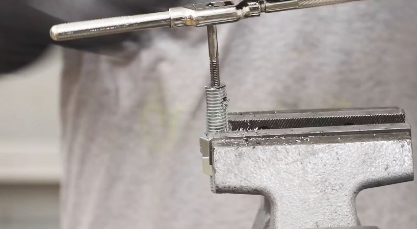 Сбоку в ней просверливается отверстие, и на него наваривается гайка. К трубке нужно приварить саму штангу из тонкого прутка, который может свободно проходить в поперечное отверстие в игле.