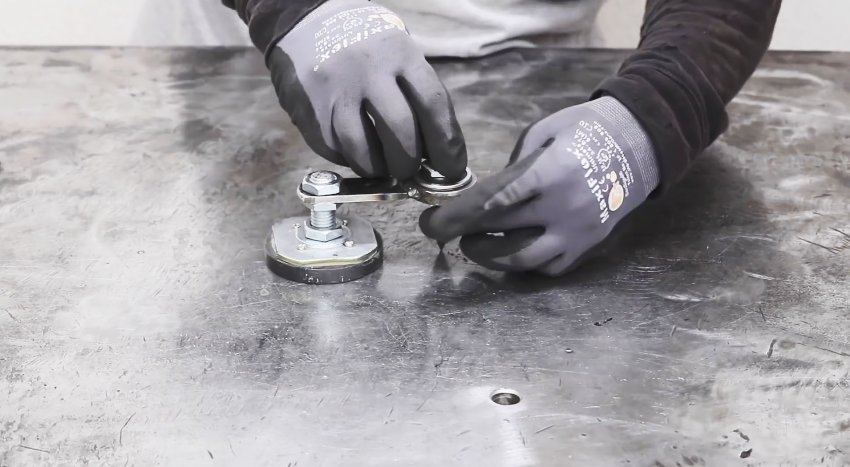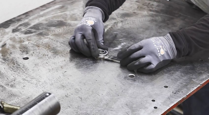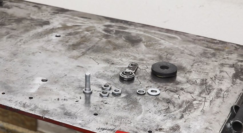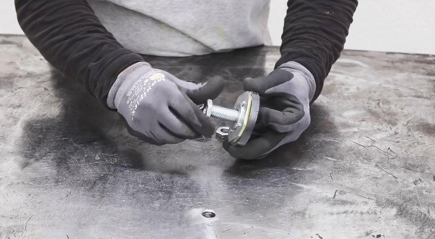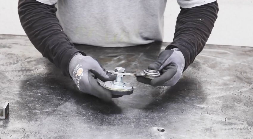 В магнит вставляется болт, и зажимается гайкой. Затем поджимается ранее сделанная деталь с подшипником.