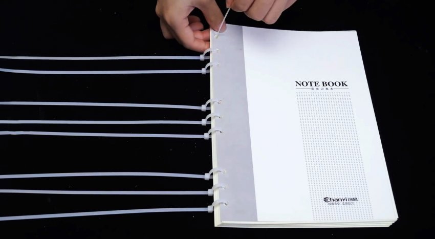 Чтобы сделать свой блокнот любого размера, просто сделайте проколы дыроколом и стените бумажные листы хомутами.