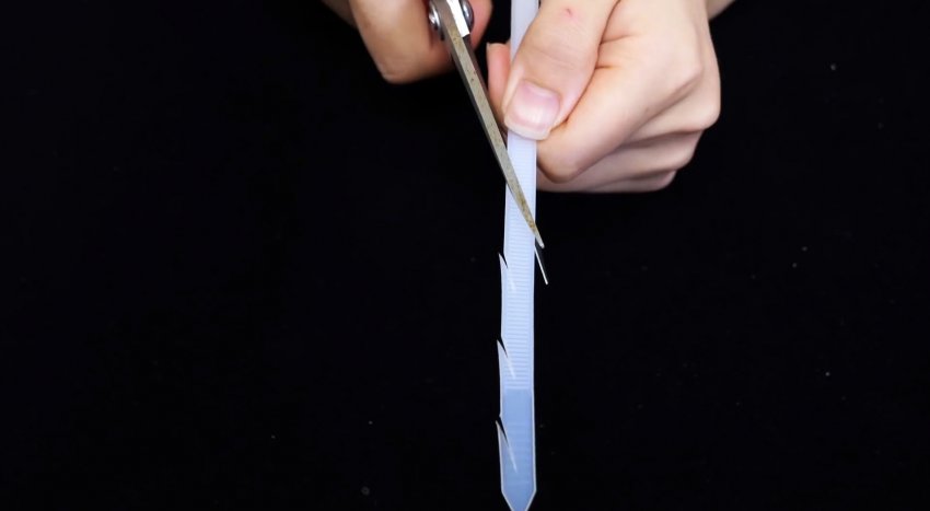 Если нарезать полоску стяжки под елочку, то получится очень хороший инструмент для чистки сливных отверстий от волос.