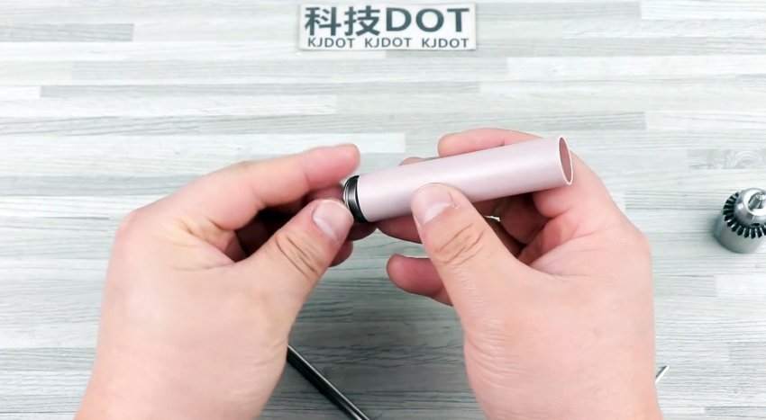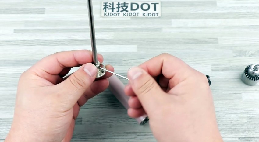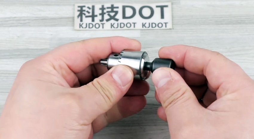 На выступающий на обратной стороне трубки вал устанавливается сверлильный патрон с адаптером. Все подгоняется таким образом, чтобы избежать образования люфта.