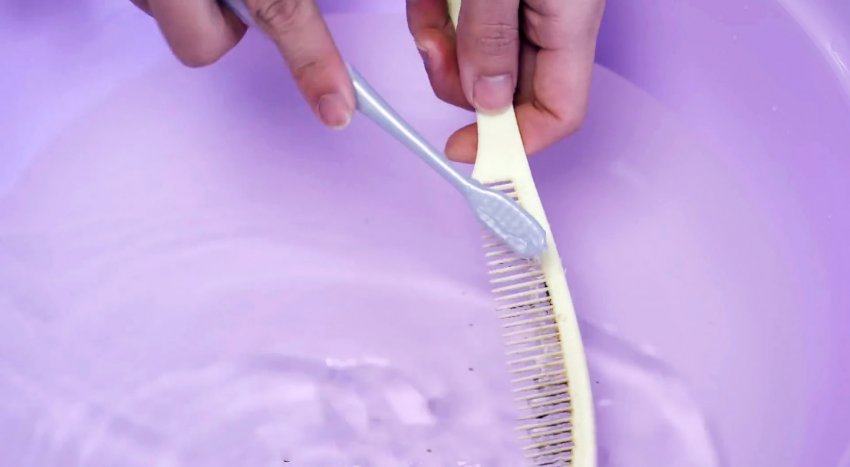 Старой зубной щеткой можно помыть расческу. Ее щетина хорошо проникает между зубцами гребешка, убирая всю грязь. Особенно хорошо она справляться с этой задачей при мойке в теплой воде.