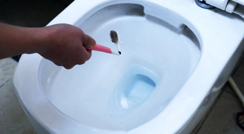 Если аналогично разогреть шейку щетки, но загнуть ее в другую сторону, то получится удобный инструмент для мойки под ободком унитаза.