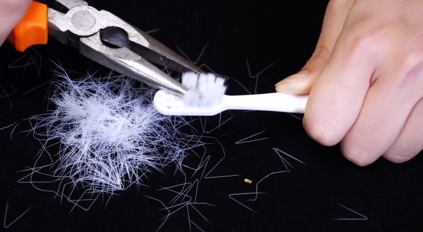 У двух щеток срывается плоскогубцами щетина.