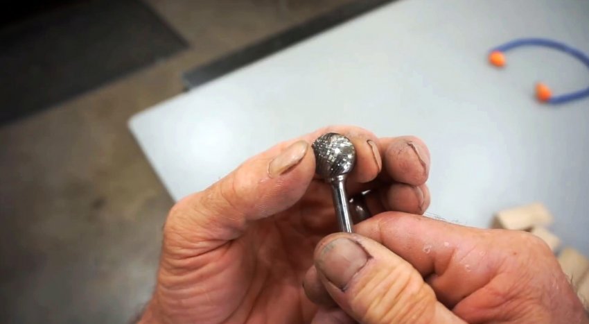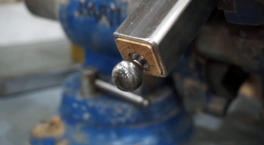 Брусок просверливается насквозь вдоль так, чтобы вставить в него борфрезу, и она своим краем при прохождении сквозь трубу срезала шов заподлицо со стенкой.
