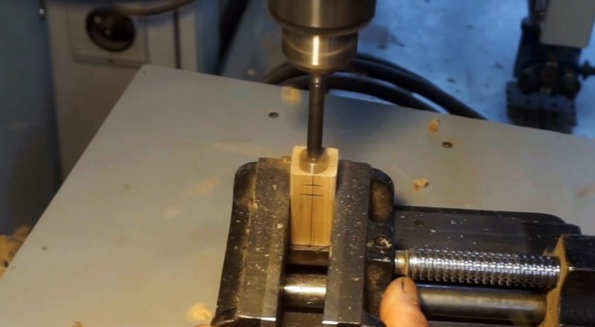С одного края отверстие должно получиться широким для запрессовки подшипника. Затем оно делается узким на 5-10 мм, чтобы в него проходил только хвостовик борфрезы. До второго края оно расширяется под диаметр удлинителя сверла.