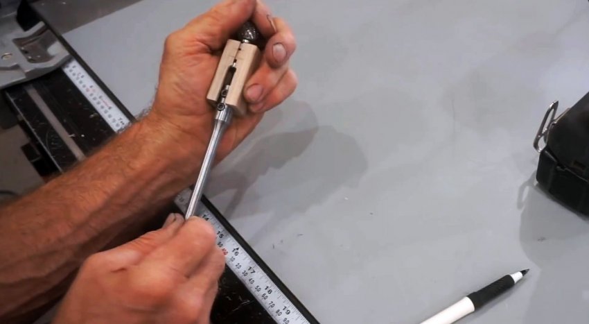 Чтобы зажимать на хвостовике удлинитель, нужно сделать разрез в части бруска, где тот находится. Это нужно, чтобы добраться отверткой до винтов.