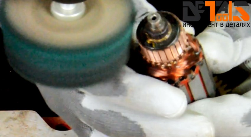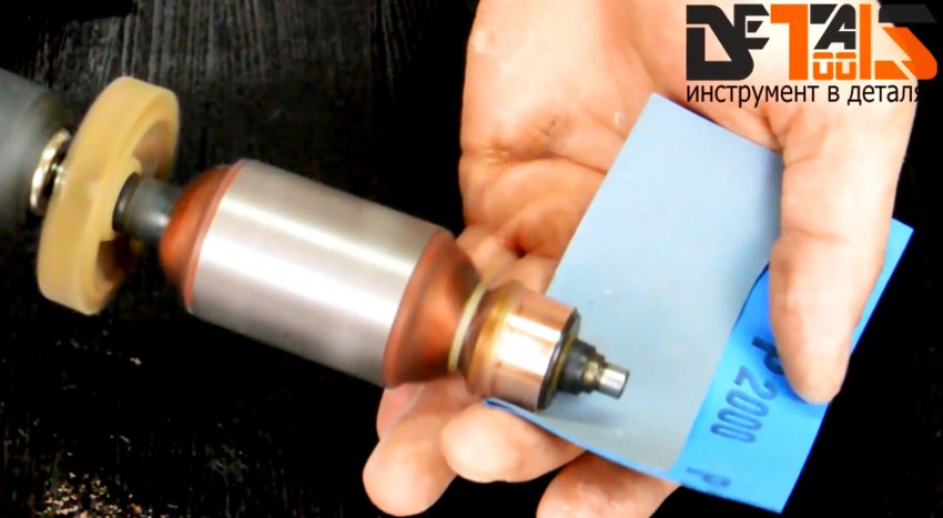 После снятия фаски ротор зажимается в дрели, и выполняется полировка ламелей наждачкой Р2000.