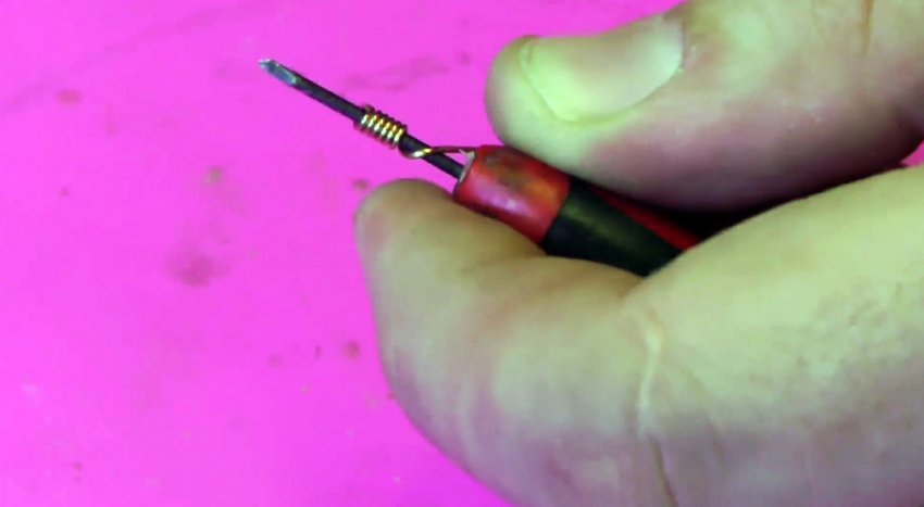 Можно зачистить провод, и накрутить его медную жилу на иголку или тонкое шило.