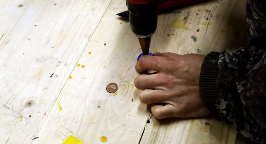 Затем на ручку надевается крышка от пластиковой бутылки с отверстием.