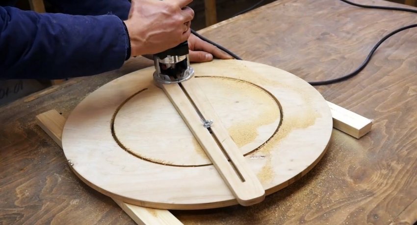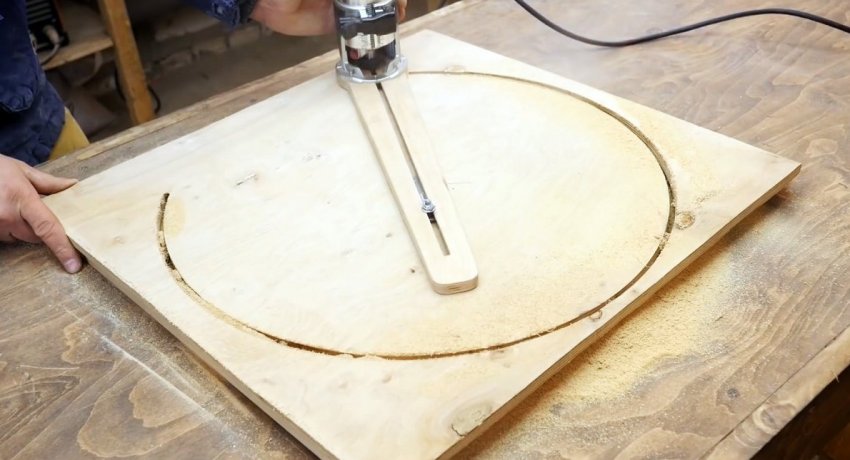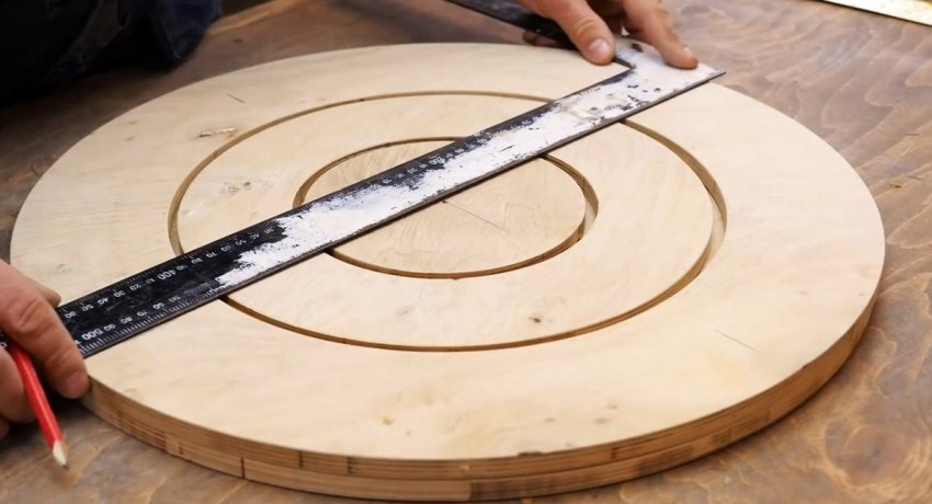 Один диск остается без изменения, а на втором нужно вырезать внутренний круг. Для этого при разметке радиус на циркуле требуется уменьшить на 90 мм.