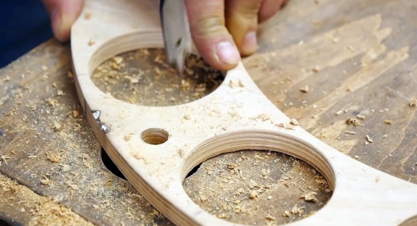 В результате получаем кольцо и еще один внутренний круг. В последнем нужно аналогично вырезать диск. Все кромки после этого следует зачистить наждачной бумагой.