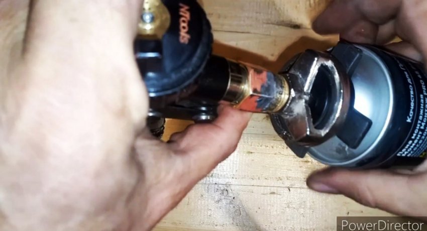 Чтобы получить переходник, нужно просто спаять их между собой. Для герметичности сборка выполняется с применением фумленты. Используя полученный инструмент для распыления пены можно добиться наложения идеально ровного слоя. Это очень поможет при нанесении напыляемого утепления. Смотрите видео
