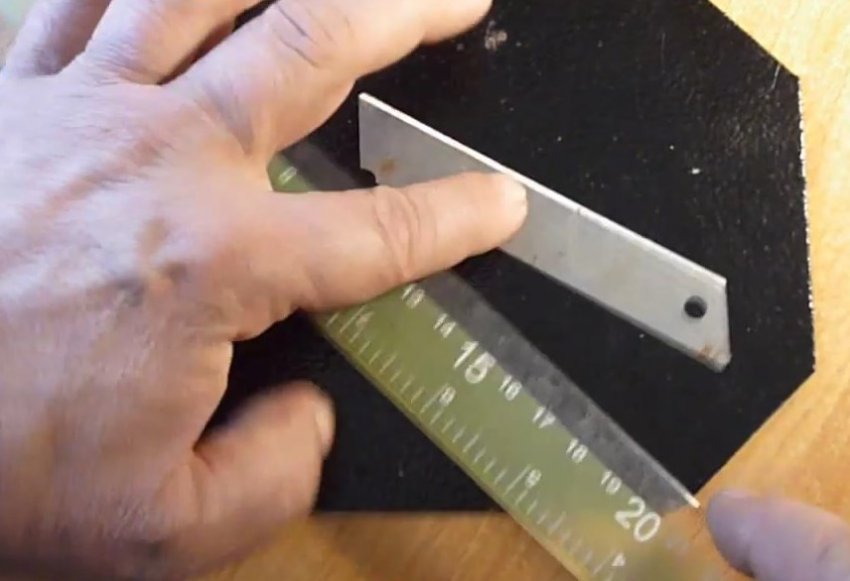 2. Размечаем полотно от канцелярского ножа, как показано в видео ролике.