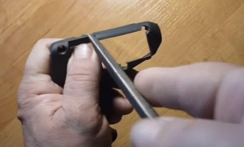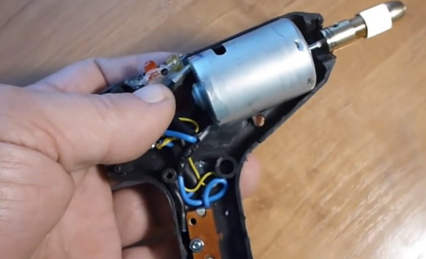 1. Подготавливаем штатные места для деталей в корпусе нашей минидрели.