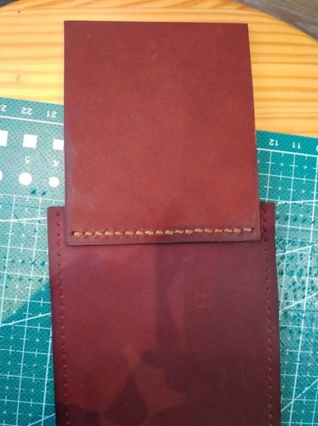 Далее прошиваем карман, и лишь после этого устанавливаем фиксатор, прошиваем чехол по всему периметру.