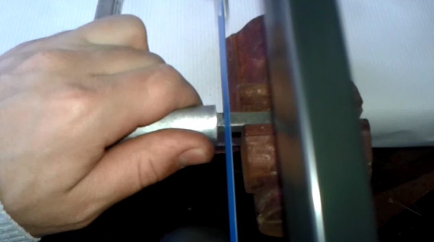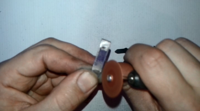 С помощью бор машинки и отрезного диска, по отмеченным линиям выбираем метал под толщину лобзика