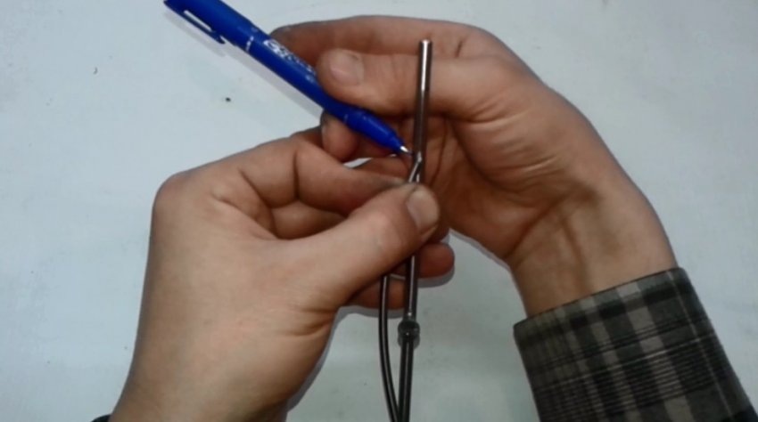 Прикладываем к большой трубке и отмечаем место для отверстия, куда