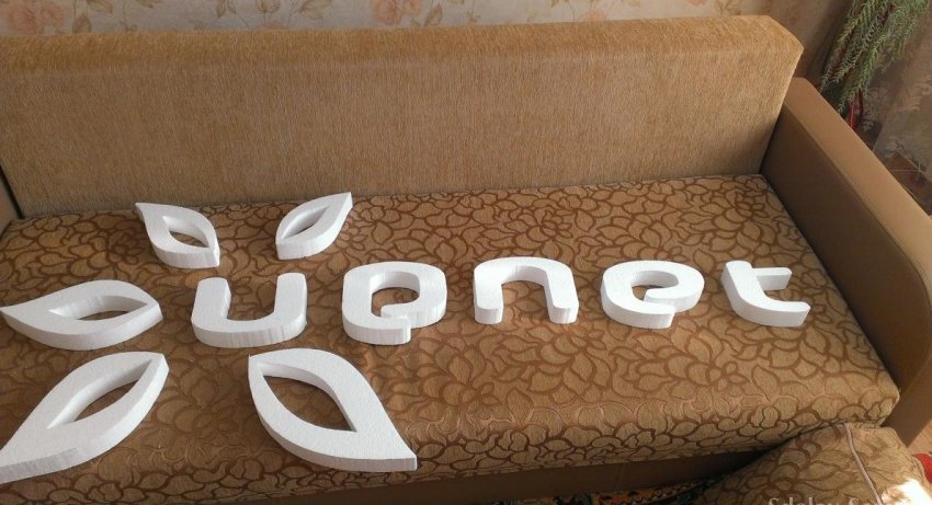После наше фигурной резки пенопласта получились элементы логотипа с немного шероховатыми краями, которые в последующем убирались наждачной бумагой, процессом шпаклевания и зашкуривания.