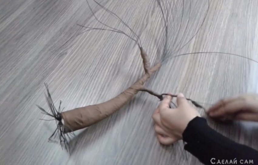 Сперва, формируем основание нашего дерева, из проволоки.
