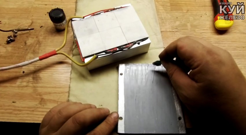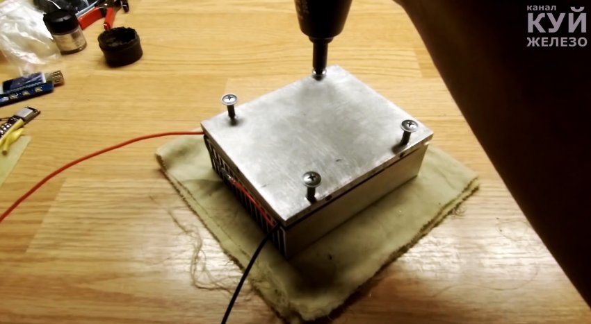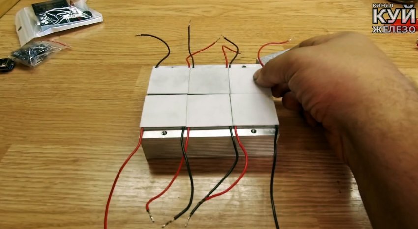 Получены, заказанные в интернет-магазине, элементы Зеебека TEP-142-T300. Они размещаются на алюминиевом радиаторе, поверхность которого предварительно тщательно зашкурена для лучшего контакта.