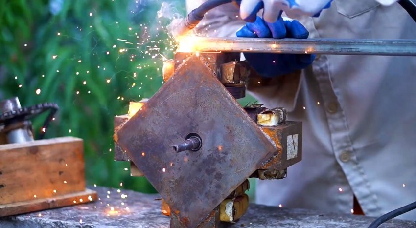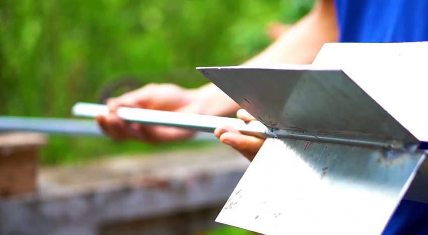 Из профильной трубы и тонкой листовой стали свариваются лопасти. Трубка приваривается к валу каретки.