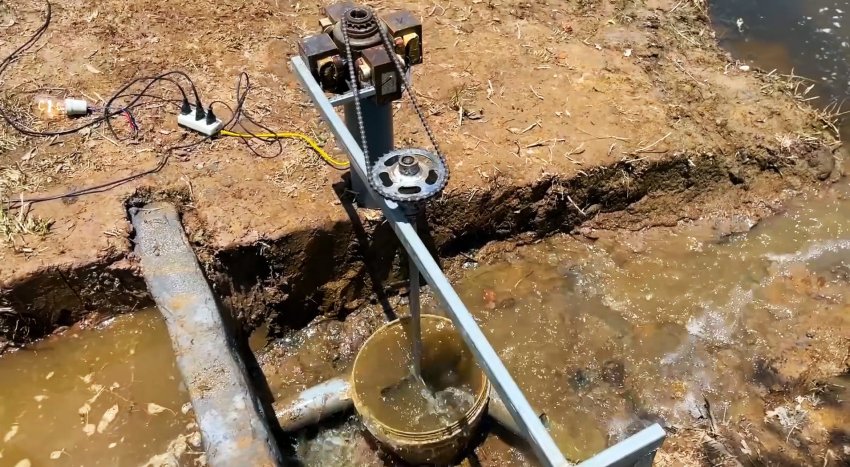 Открыв шлюз, можно заставить вращаться лопасти от тока воды. В результате примитивный редуктор из велосипедных комплектующих заставит ротор быстро вращаться. В итоге генерируется электричество.