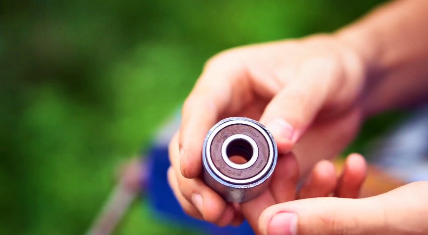 Под вал ветряка подбирается 2 подшипника, или же их можно снять с мотора донора. Подшипники нужно запрессовать в отрезок трубки. Если нет трубы подходящего диаметра, то можно разрезать вдоль имеющуюся большую, сузить ее и заварить.