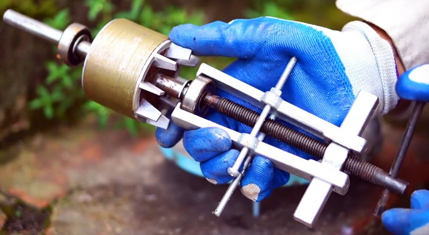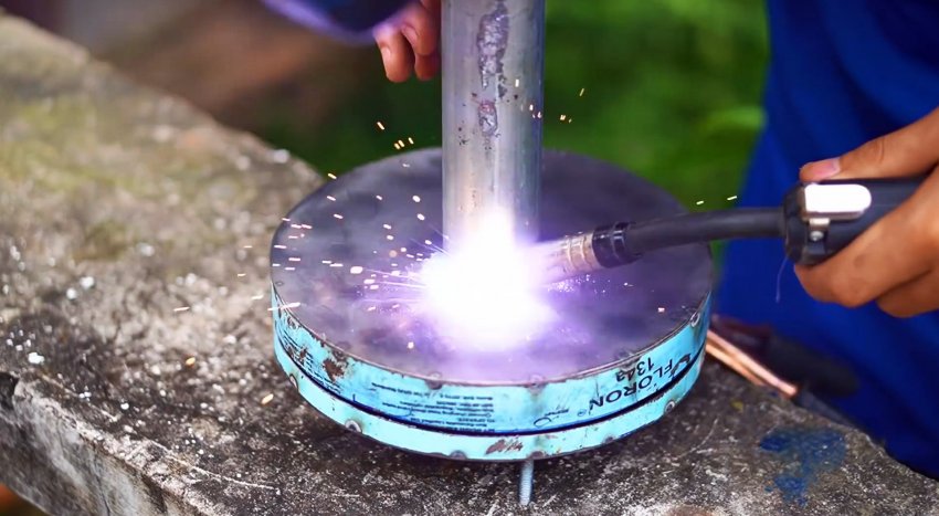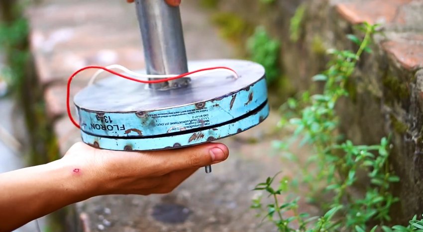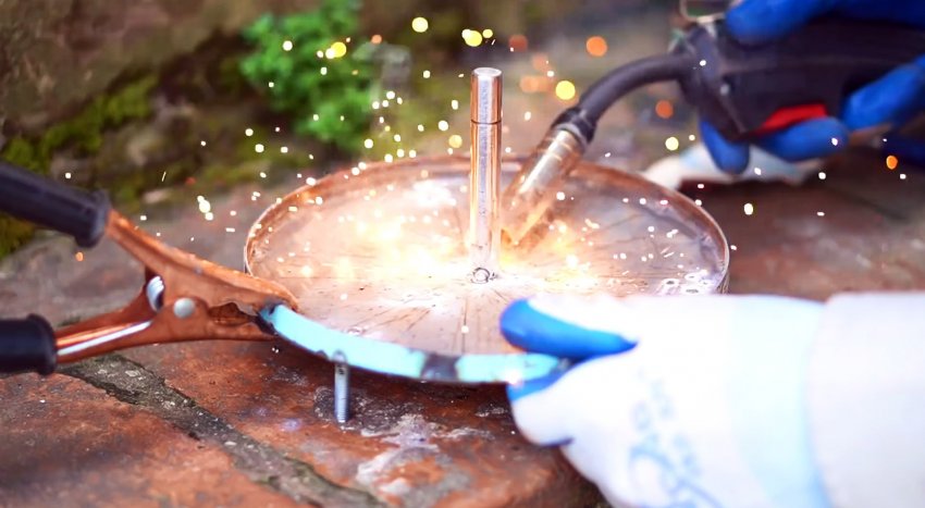 В центр детали ротора изнутри приваривается под прямым углом вал, на котором будет выполняться вращения. Его можно отрезать от якоря любого сгоревшего мотора.