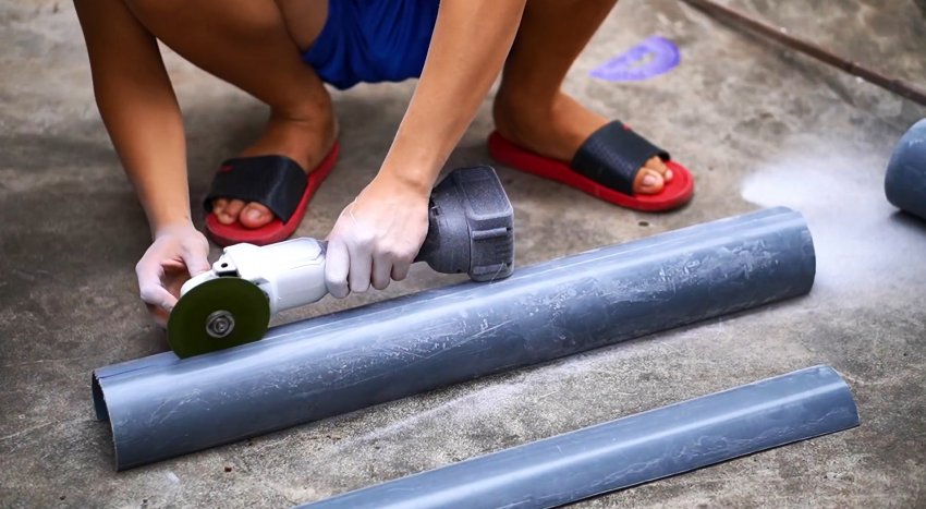Лопасти ветряка делаются из пластиковых полос, вырезанных из канализационной трубы. Они прикручиваются на профильные трубы, которые в свою очередь просверливаются с краю для соединения с ротором.
