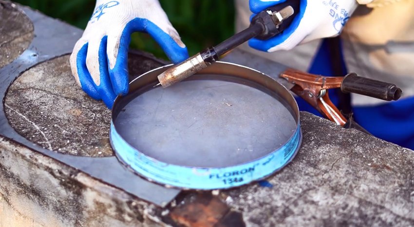 Затем под них вырезается по заглушке из листовой стали. Эти диски ввариваются в кольца.