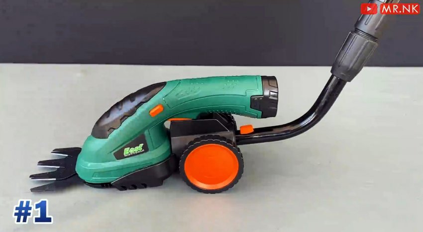 В первом положении им можно подстригать ветки. Во втором с удлиняющей ручкой он позволяет подрезать траву в труднодоступных местах, куда не вмещается большая газонокосилка. Аккумуляторные ножницы подровняют газон под бордюром, кустами роз и т.д.
