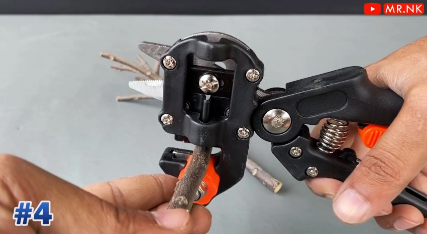Имея такой секатор, прививать растения почти со стопроцентной приживаемостью сможет даже ребенок. Нужно просто подобрать совместимый подвой и привой одинакового диаметра, и срезать их этим инструментом.