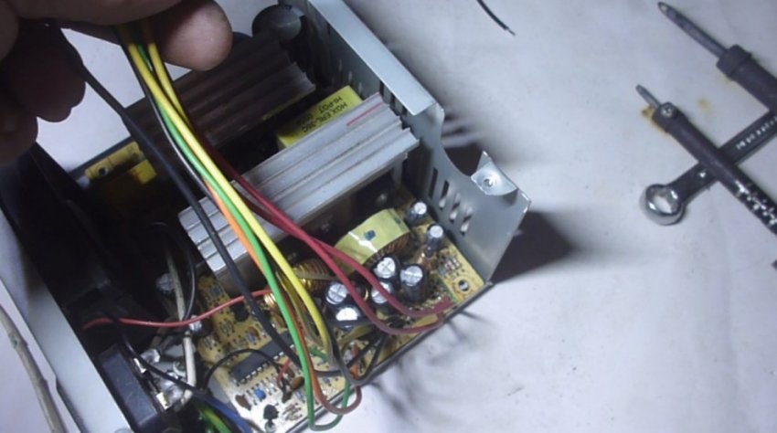 -Выпаять из старого компьютерного блока питания связки лишних проводов, оставить черный минус питания, желтый 12В плюс, оранжевый 3.3В плюс, красный 5В плюс, и зеленый для включения.