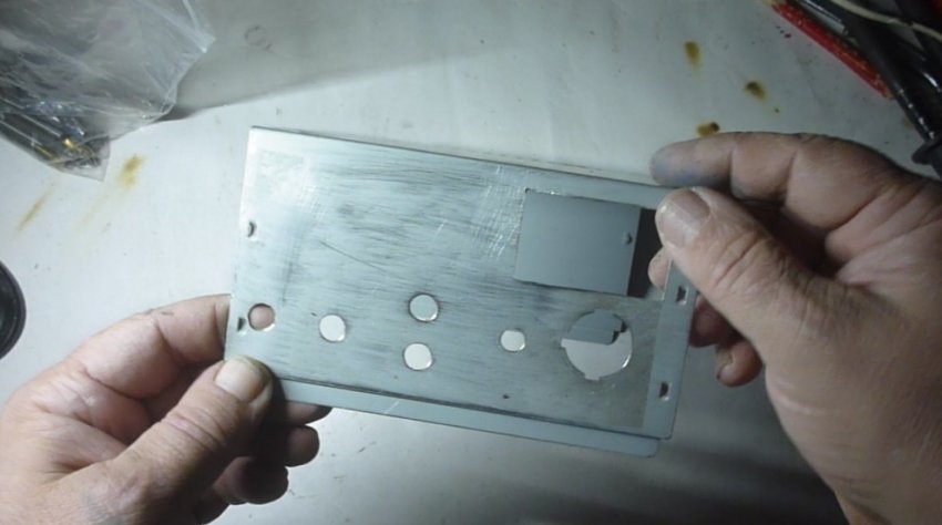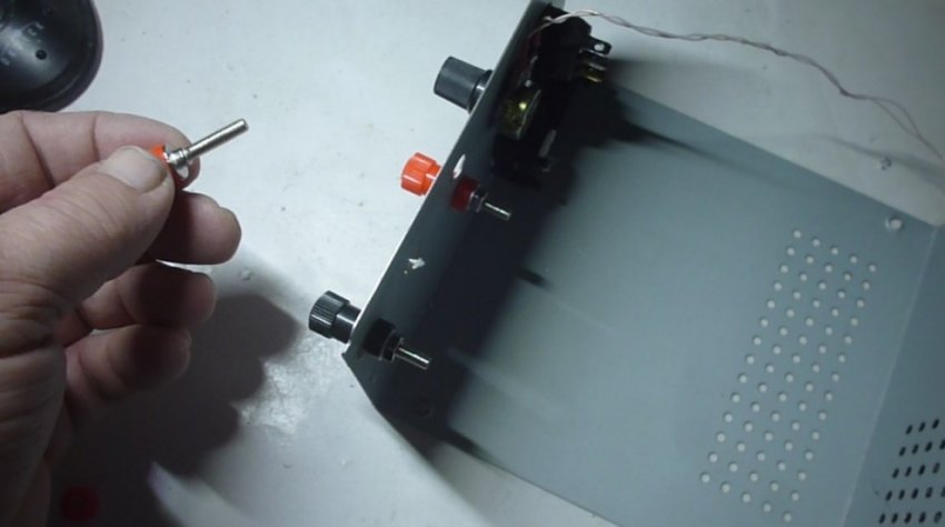 -На лицевой панели блока питания высверлить и отверстия для монтажа приборов контроля, ручек управления и разъемов снятия напряжения с прибора.