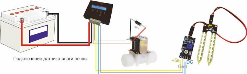 Подключение датчика влаги почвы и в зависимости от погодных условий не включения таймера по установленному интервалу;